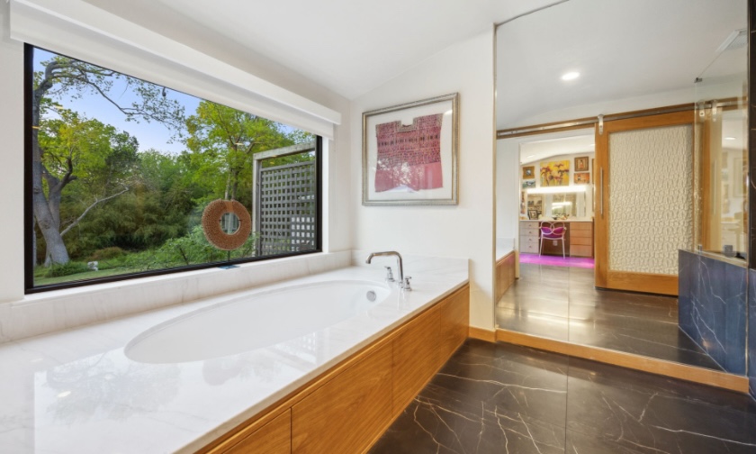 Unfortunately, the superb art collection, which is not included with the house, is a personal collection of Hodges and her husband. However, you can get custom artwork from Hodges and her fellow artists at Blue Goat Studio, her latest endeavor with long-time friend and fellow artist Mary Nickell. You can also sign up for one of their classes and create your own custom artwork for this extraordinary home!