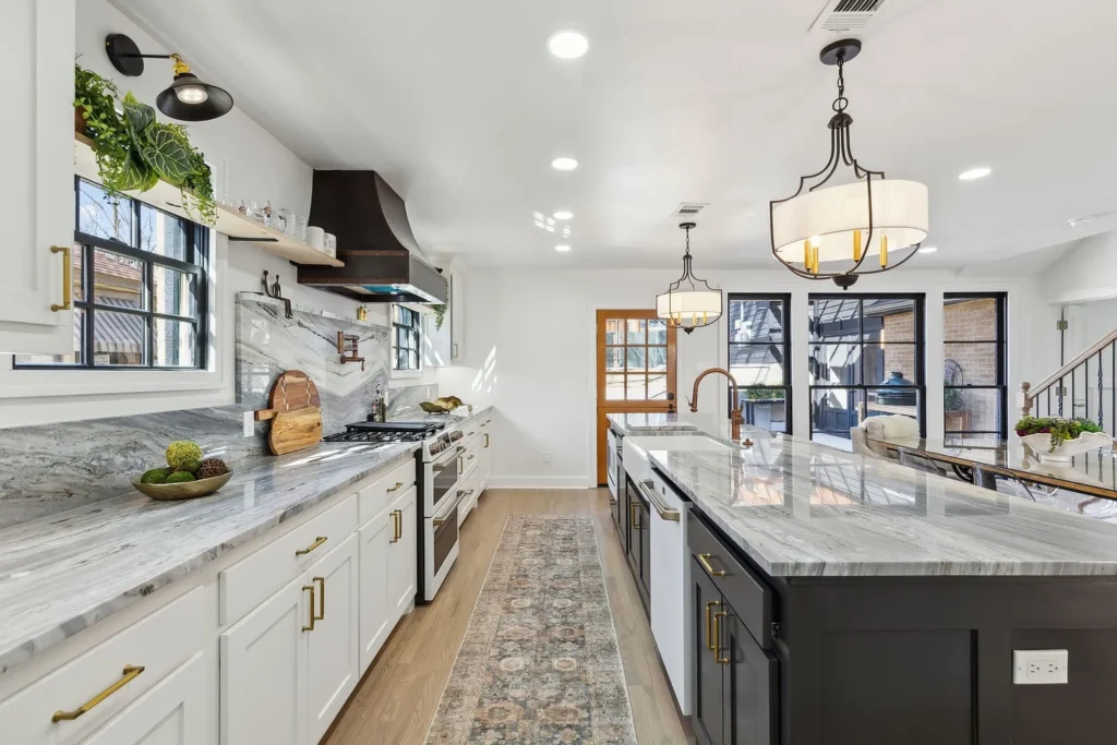 “The owners are a husband and wife design team,” said listing agent Lou Moore with Allie Beth Allman & Associates. “He handles construction, and she’s the designer. I would call her an absolute artist. The way she transformed this project to honor the Tudor heritage while creating a contemporary feel is just impeccable.”