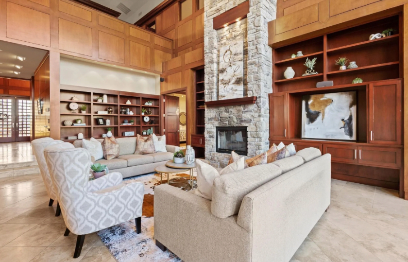 “This home’s combination of architectural elegance, luxurious amenities, and spectacular lakefront setting make it an exceptional find,” listing agent Penny Meyer said. “Whether you’re looking for a peaceful retreat or an entertainer’s dream, this property has it all. It offers the perfect balance of tranquility, privacy, and convenience.”
