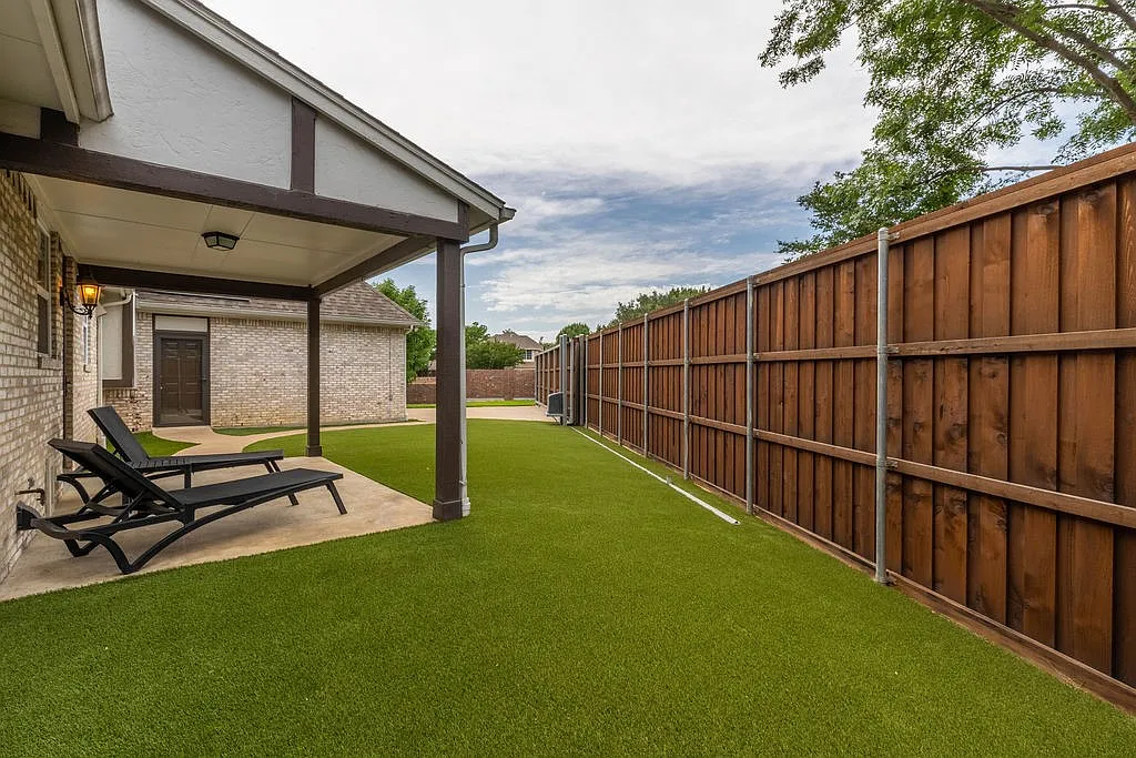 Finally, the backyard is rife with potential. With an abundance of green space and a large covered patio, there’s no limit to the amenities you could imagine here.