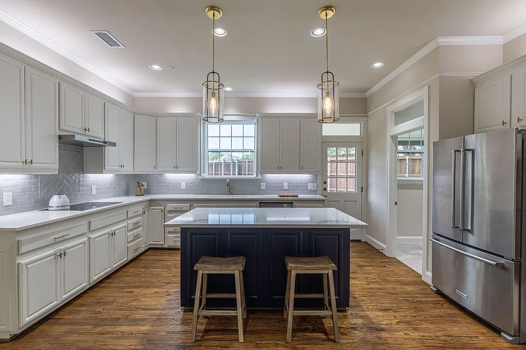 Then, the chef’s kitchen is meticulously reimagined with refined style and modern functionality. With quartz countertops, a large island, and ample space, this is a dream setup for any chef.