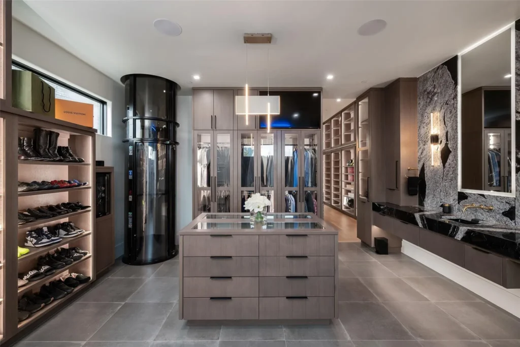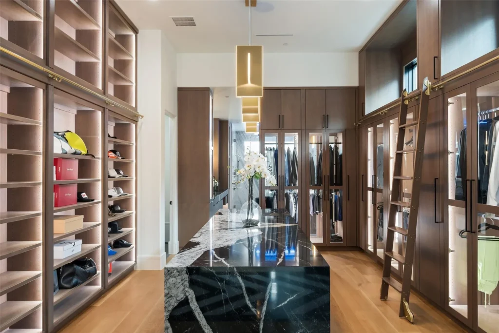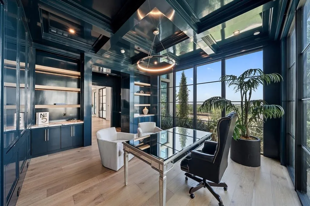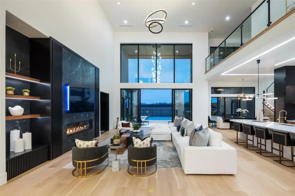 “This custom-designed home boasts an extraordinary blend of soft, moody finishes and high-end craftsmanship. Experience museum-quality walls adorned with breathtaking light fixtures, and indulge in unique features like a jaw-dropping 4-car garage that opens to the foyer, a home theater complete with a bar, and dual chef’s kitchens outfitted with top-of-the-line appliances.”