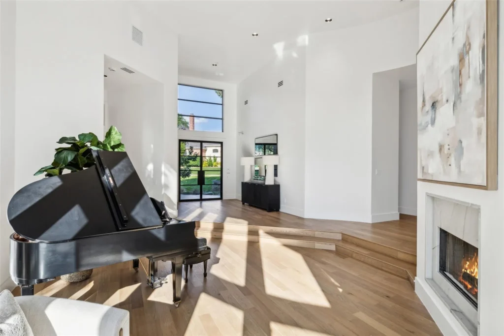 The grand entrance sets a show-stopping scene. Upon walking in, it’s apparent this home was built for exploration. The open floor plan, sky-high ceilings, and high-end design elements all coalesce to present the picture of luxury.